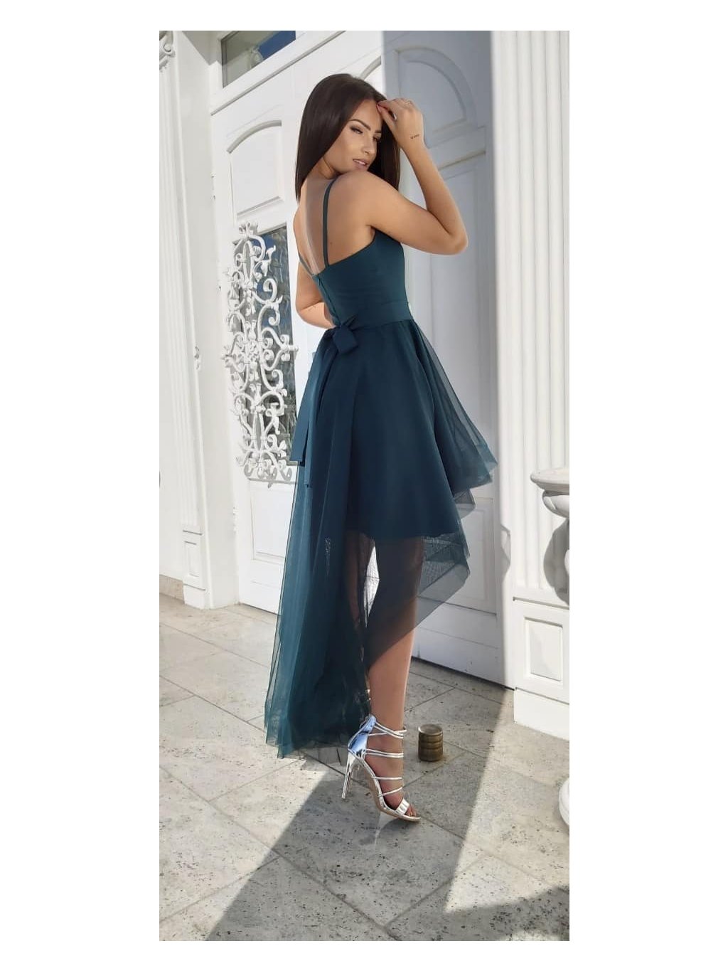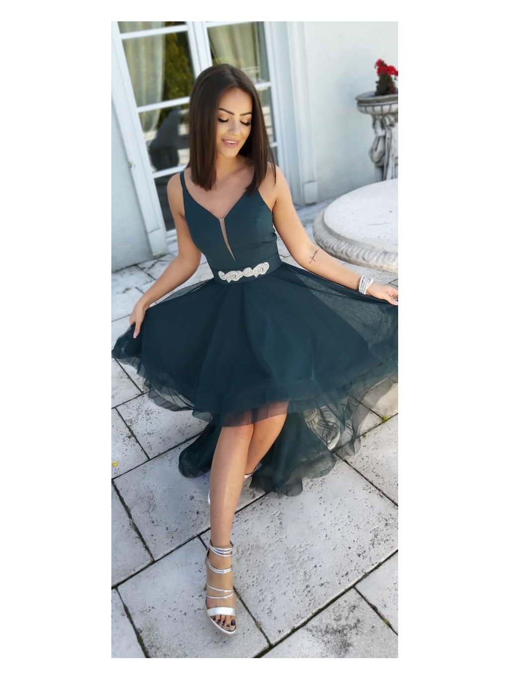 Asymetrické, mini i maxi. Zajímavě řešené šaty s nadýchanou sukní, která drží tvar. Vršek šatů je mírně elastický, ale pevný. Šaty jsou vhodné do tanečních - nebudete si po nich šlapat, a zároveň splňují kritérium délky, nebo jsou vhodné také na plesy a jiné společenské události. Šaty jsou vzadu na zip. Míry prsa/pas jsou +-2 cm (elastický živůtek).
